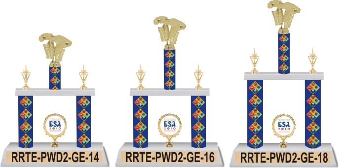 Pinewood Derby® Trophies ranging in size from 4" to 18"