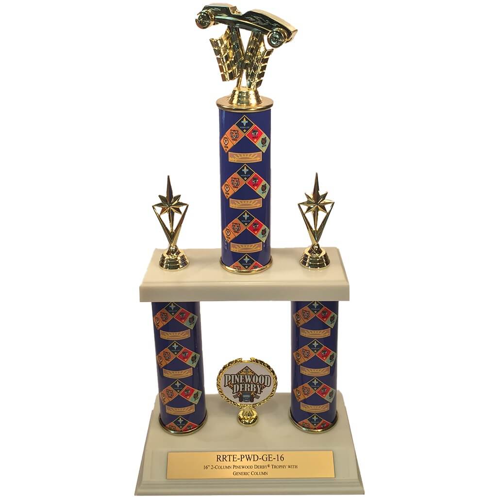 16″ 2-column Pinewood Derby® trophy with Generic Scout column